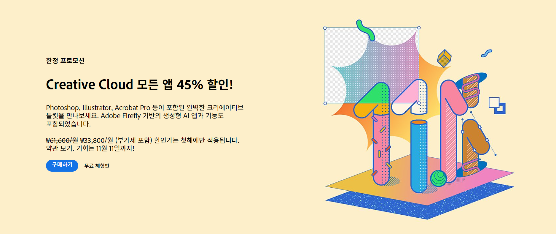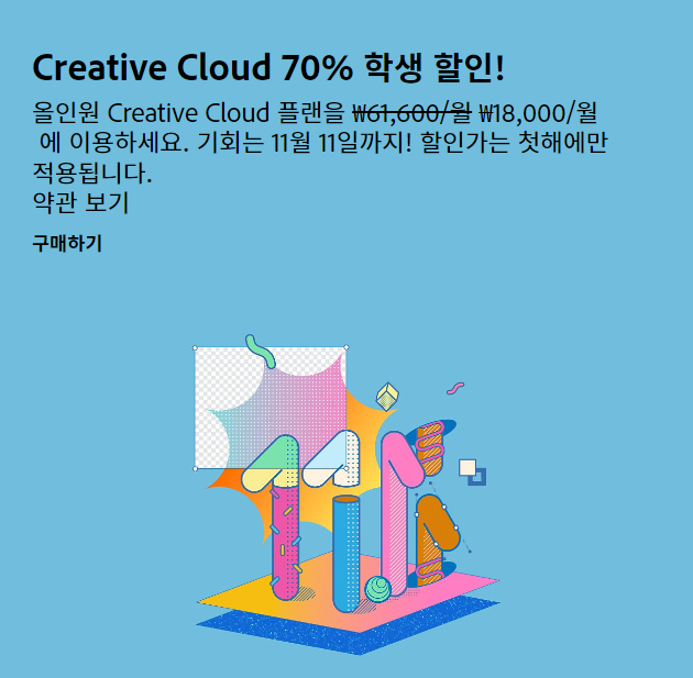 | Adobe 모든 앱 45% 할인 (11월 11일까지) (0) | 2023.11.09 |